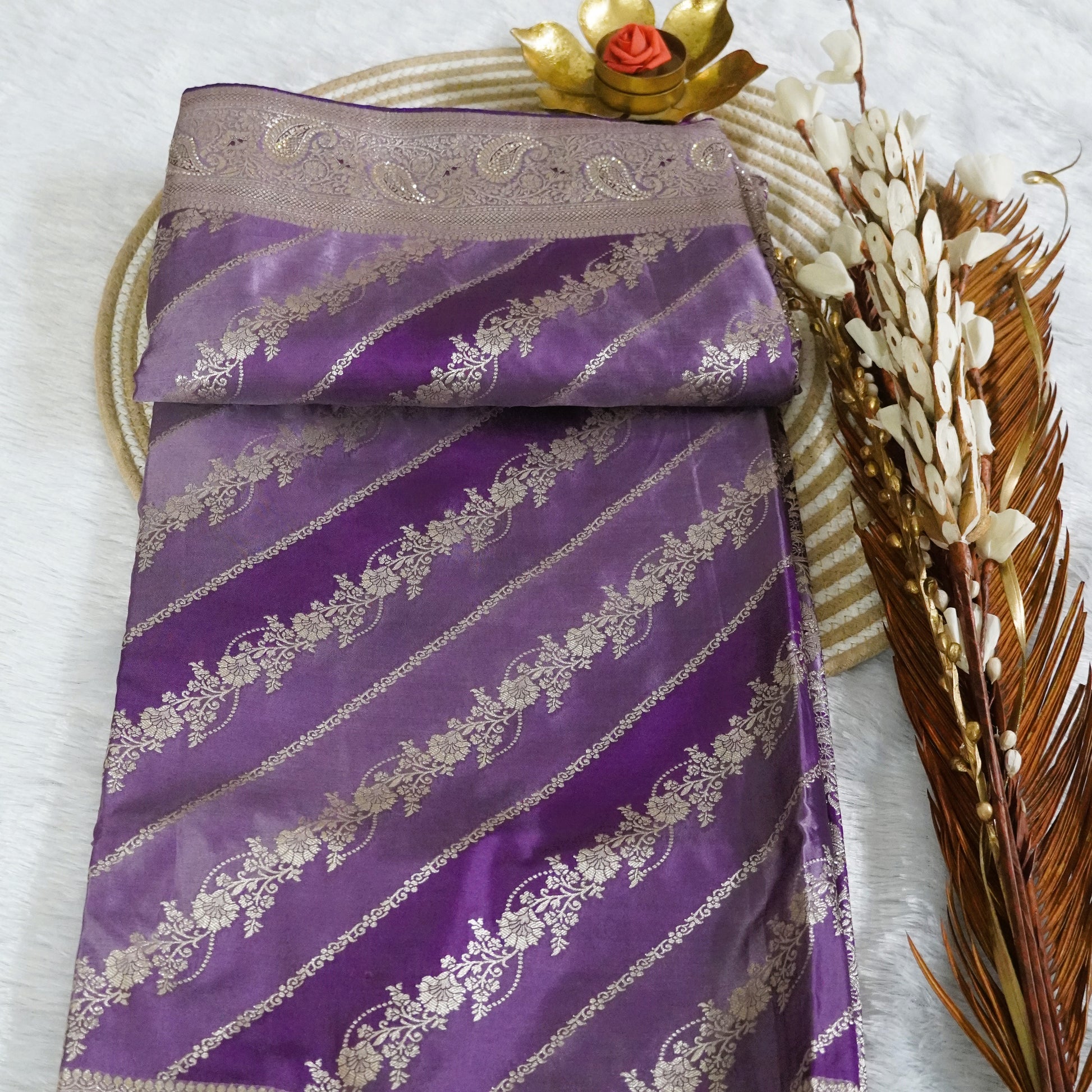 Designer Banarasee with silver zari weaving shaded with stone work | Lavender | Maguvaa Sarees