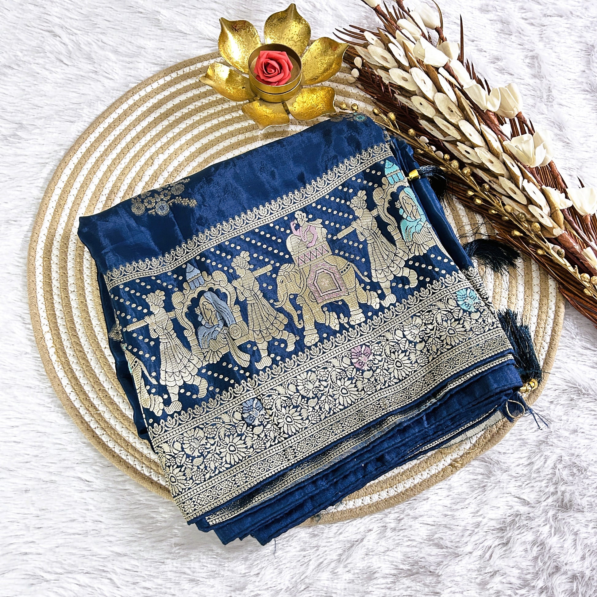 Elevate your look with this exquisite rick zari border with elephant detailing viscose saree from Maguvaa Sarees. Designed to capture both contemporary trends and traditional charm, this piece is crafted from premium-quality fabric and adorned with elegant details — perfect for weddings, parties, or festive occasions.