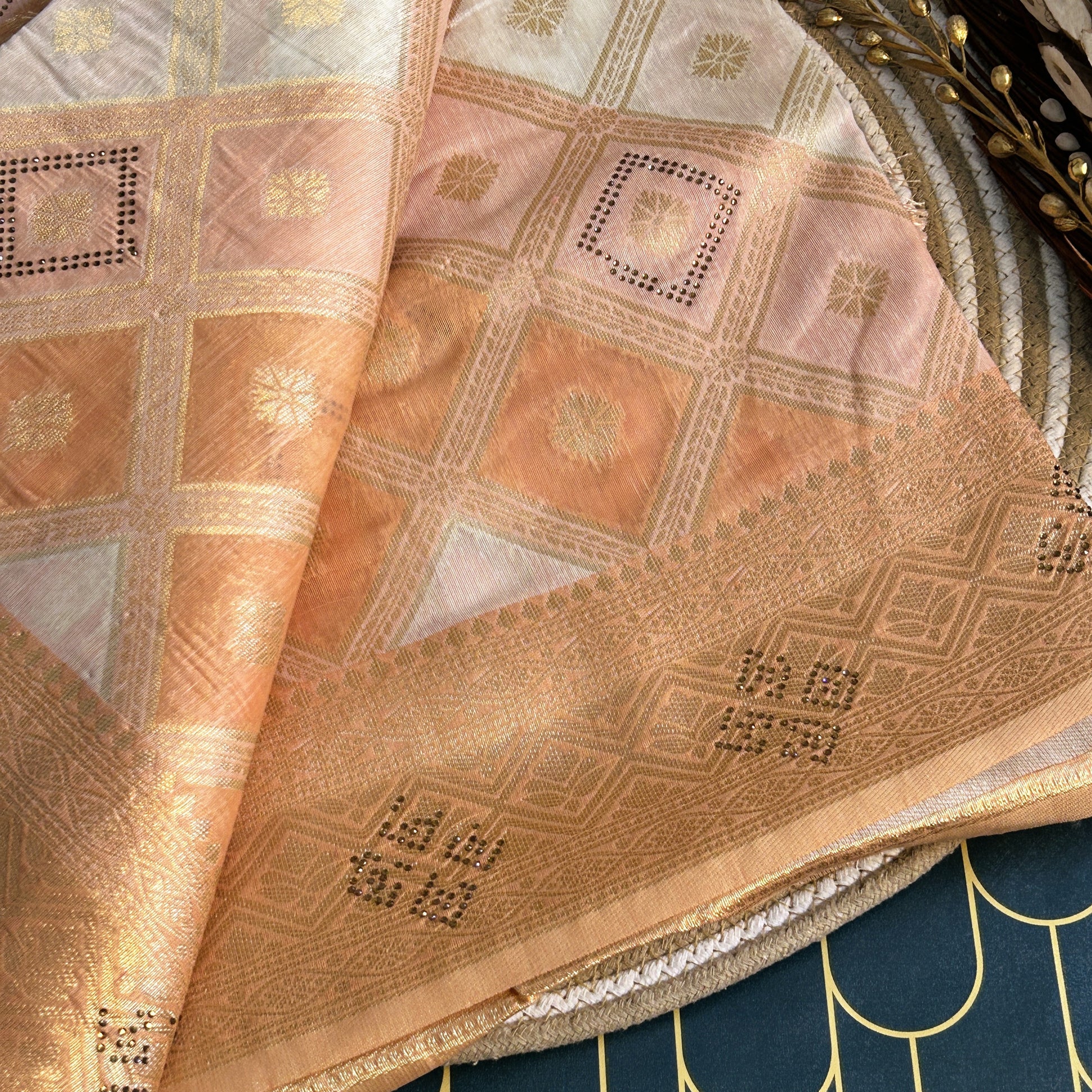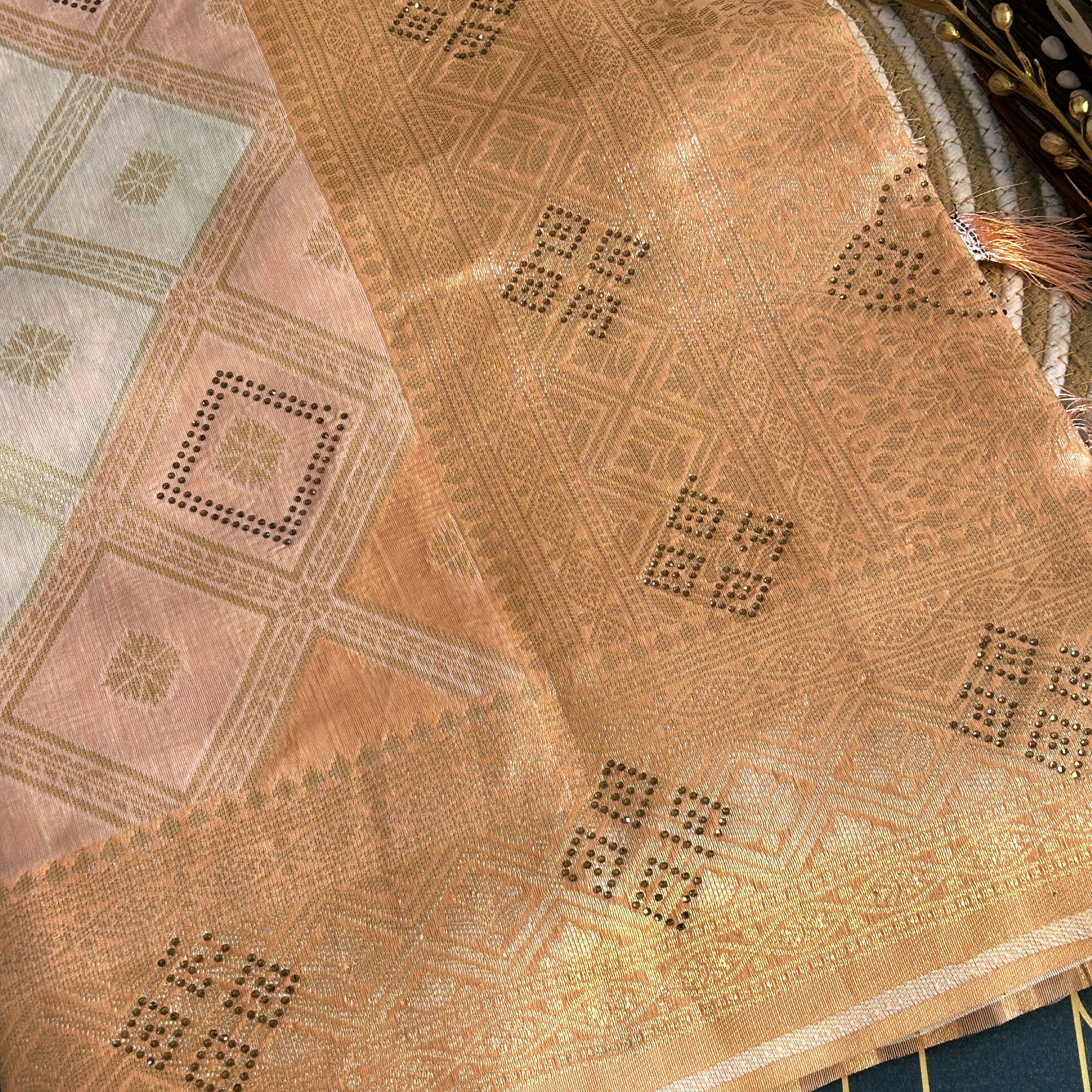 Linen Silk double shaded heavy banarasi saree stone work | Light Orange | Maguvaa Sarees