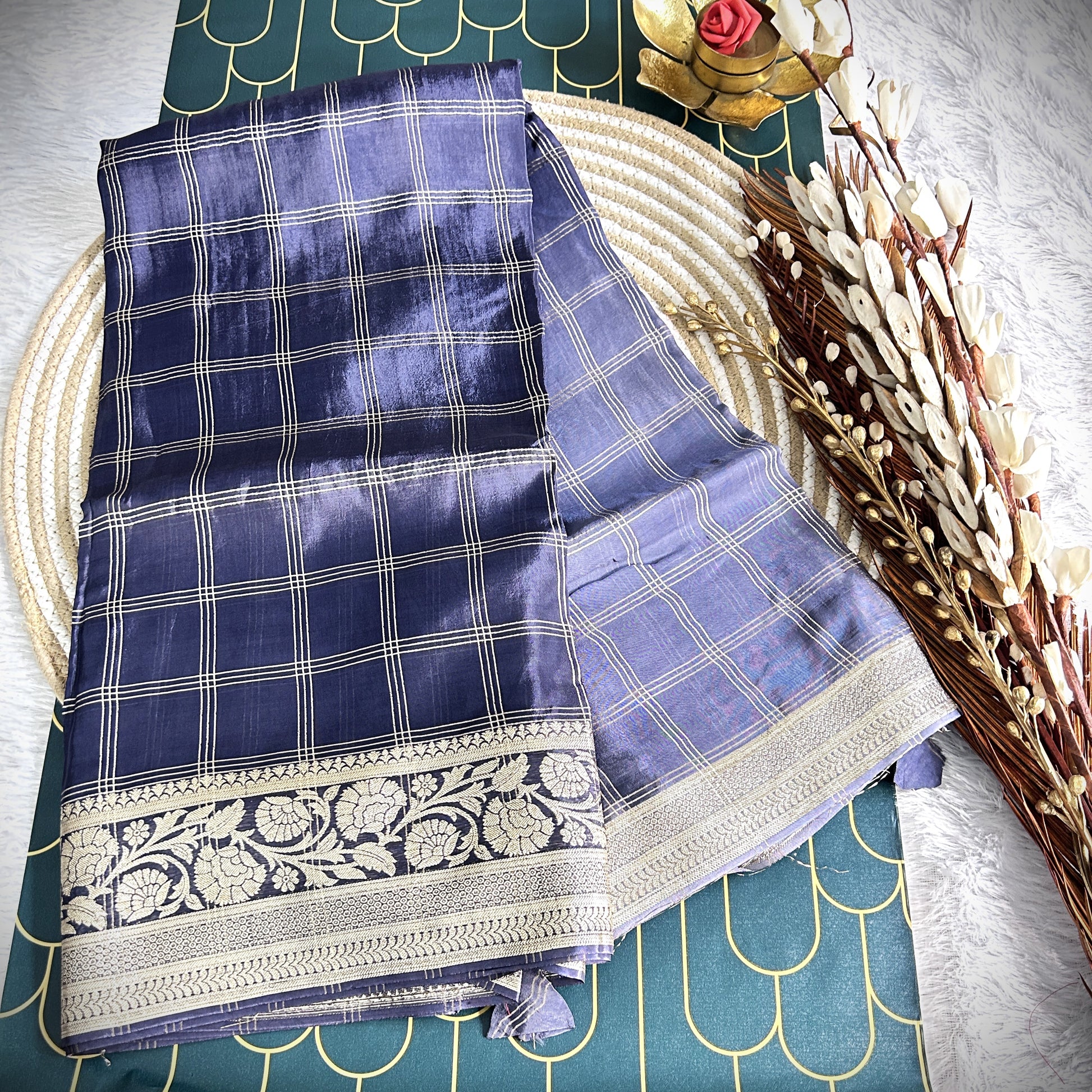 Organza Shaded Saree with Tissue Border | Dark Grey | Maguvaa Sarees