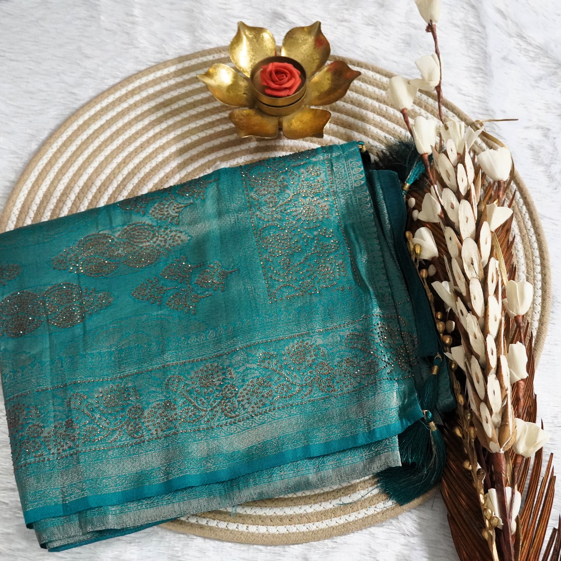 Tissue Saree with Zarcon work and all over detailing work | Sea Green | Maguvaa Sarees